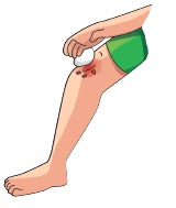 - Use an ice pack (crushed ice in a thick towel) to stop bleeding.